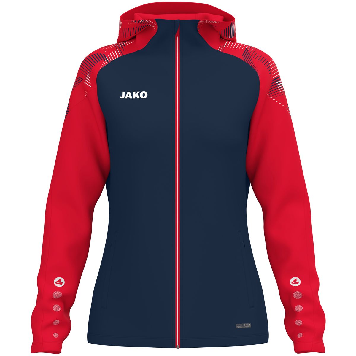 De hoodie Sonic dames overtuigt door zijn dynamische design en hoge draagcomfort. Het schouderstuk met printdesign geeft de hoodie een moderne look, terwijl de JAKO-stippen op de mouwen zorgen voor de typische sportieve stijl. Praktische zijzakken met ritssluiting bieden veilige opbergruimte voor je mobiele telefoon, sleutels of andere essentials. De jas is gemaakt van 100% gerecycled polyester, is bijzonder slijtvast, onderhoudsvriendelijk en een statement voor duurzaamheid. Of het nu gaat om warming-up, dagelijks gebruik of vrije tijd – deze hoodie combineert functionaliteit met een stijlvol design en is een echte blikvanger. Ontdek hem nu en verzeker jezelf van de perfecte combinatie van comfort en stijl.